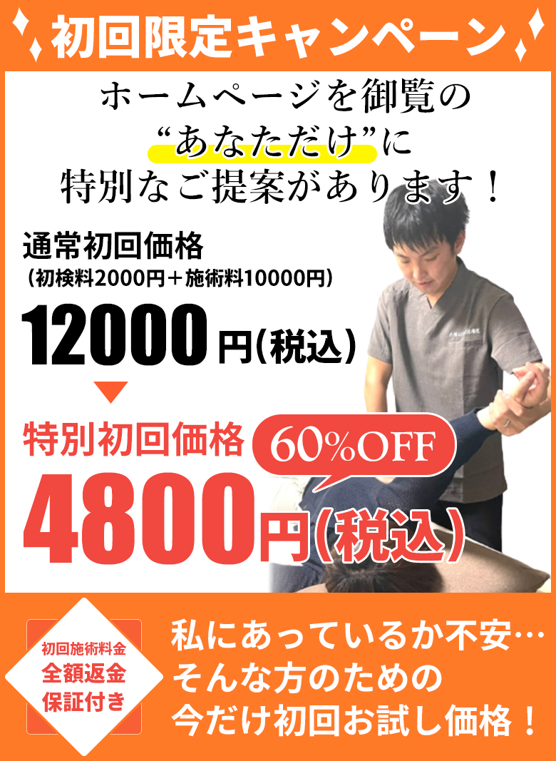 1mmも改善しなければ、その場で初回施術費を全額返金させていただきます。
